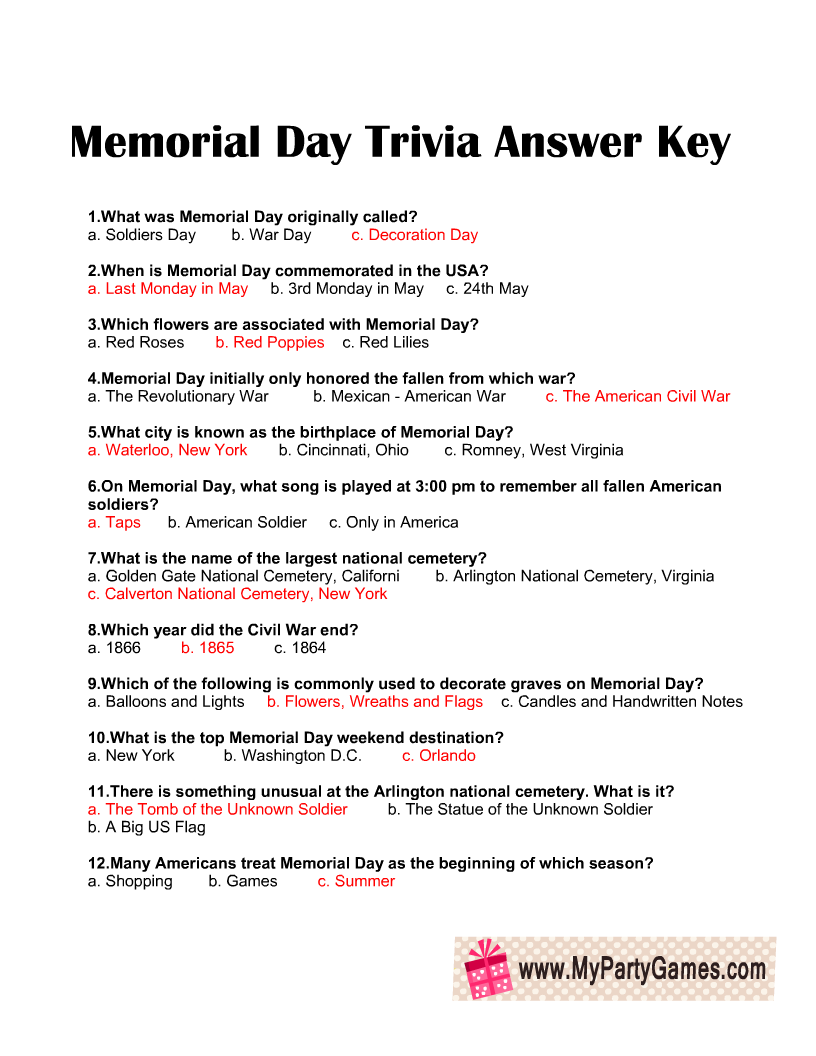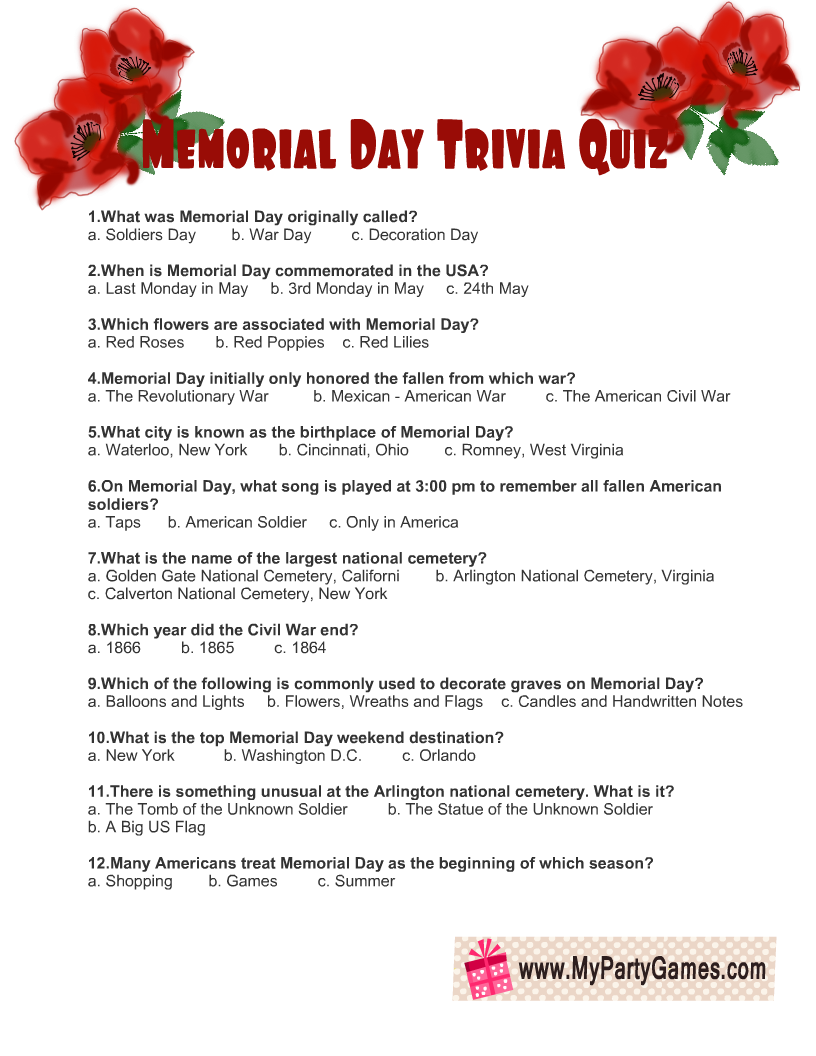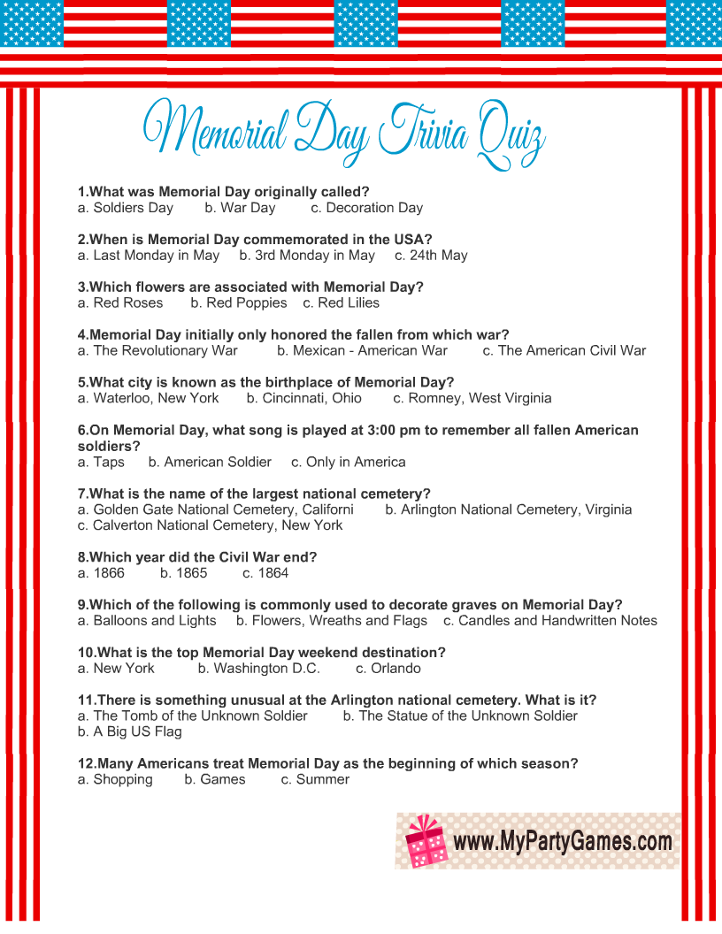 Memorial Day Trivia Questions And Answers Printable