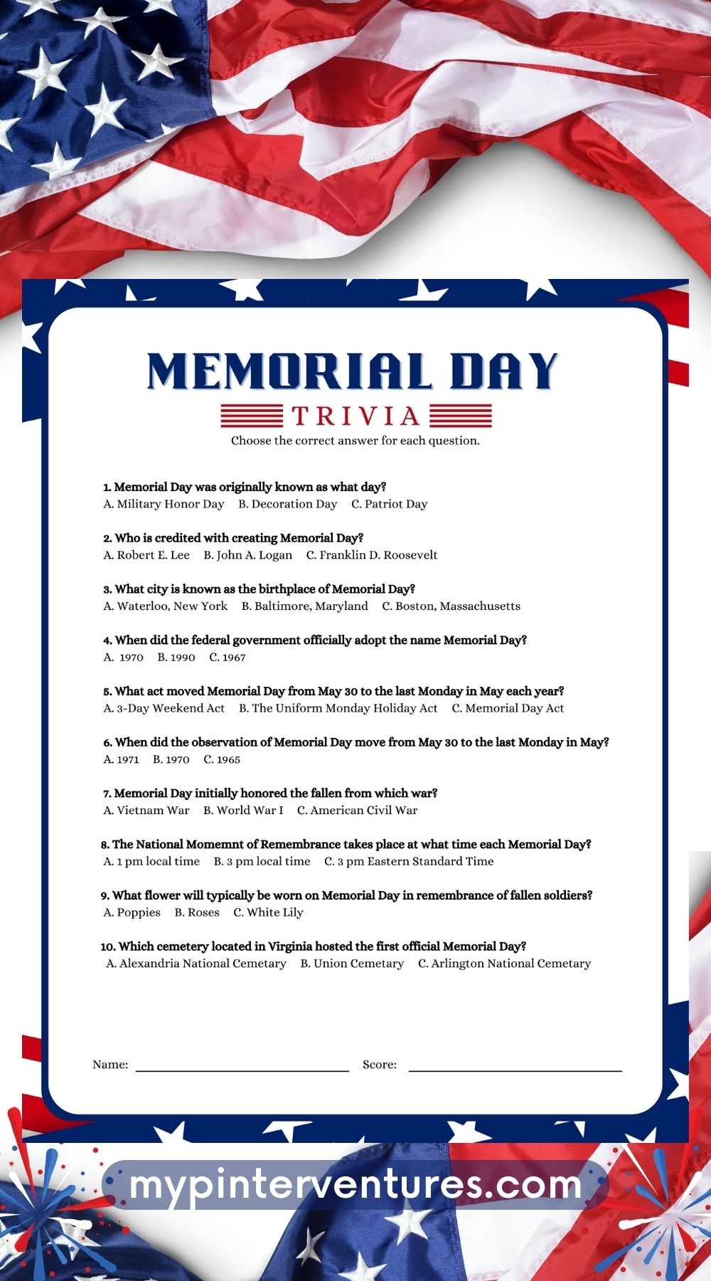 Memorial Day Trivia Game A Free Printable My Pinterventures