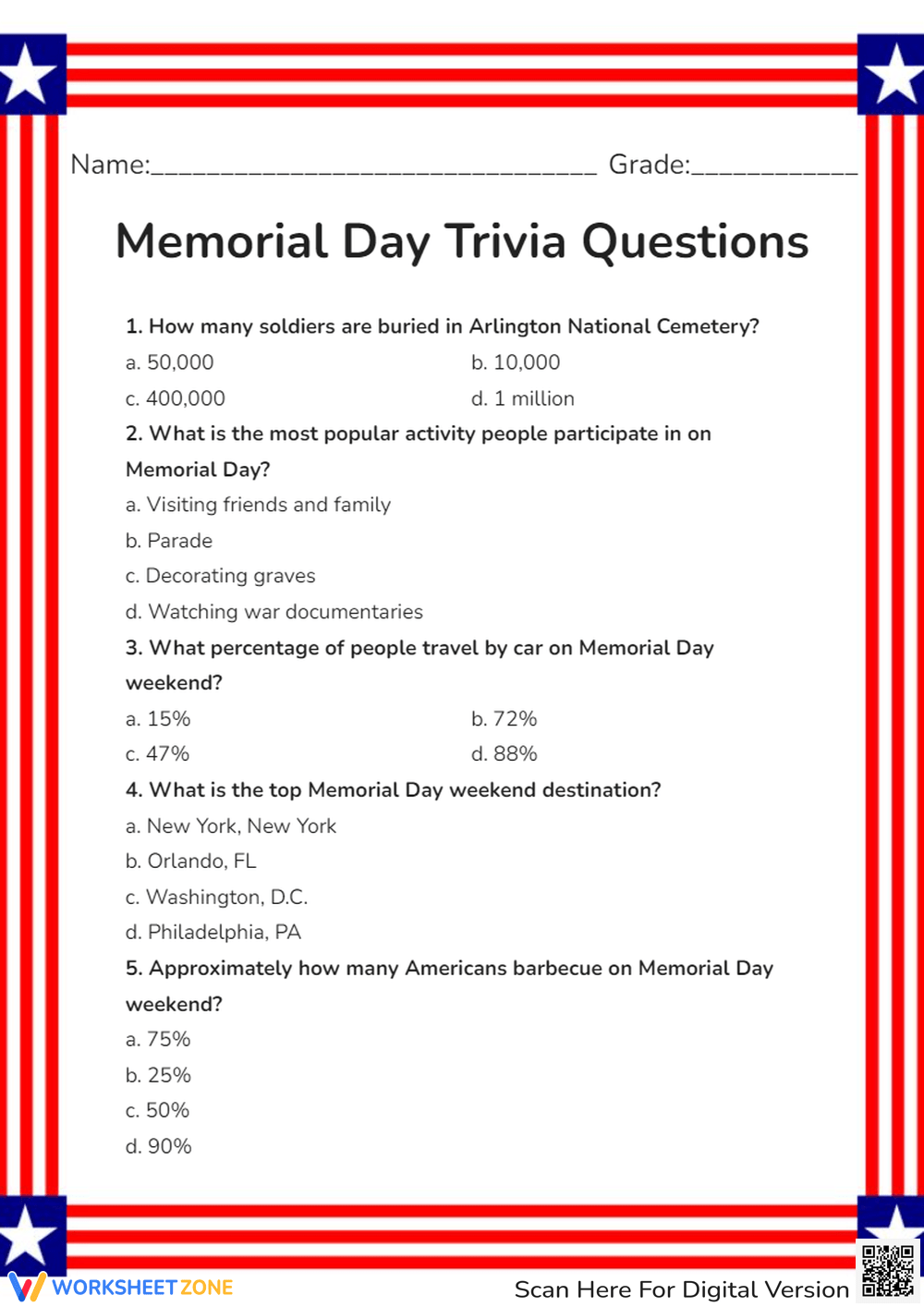 Free Printable Memorial Day Trivia Quiz With Answer Key Worksheets Library