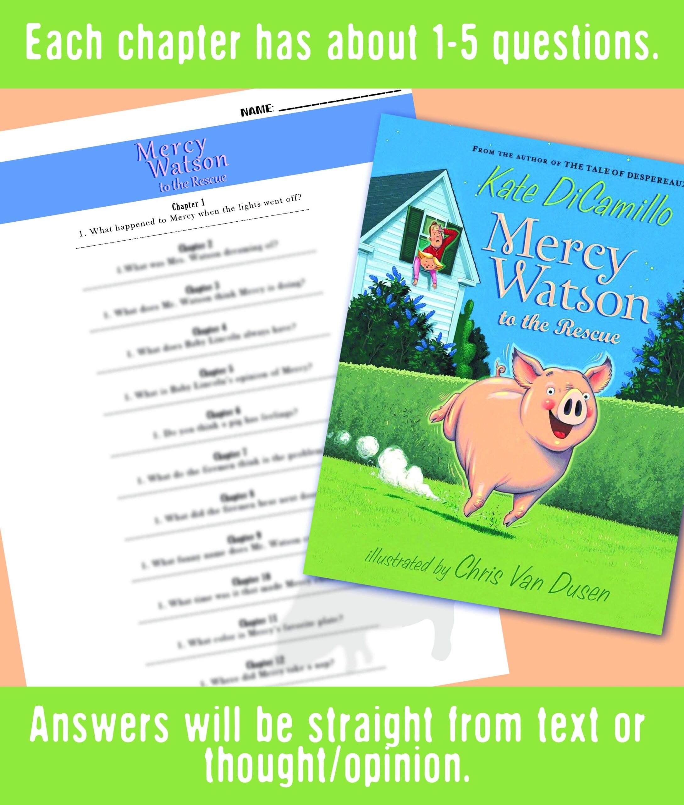Mercy Watson To The Rescue Book Review Questions Reading Comprehension Kate Dicamillo Study Guide Worksheet Printable Children s Literacy Etsy