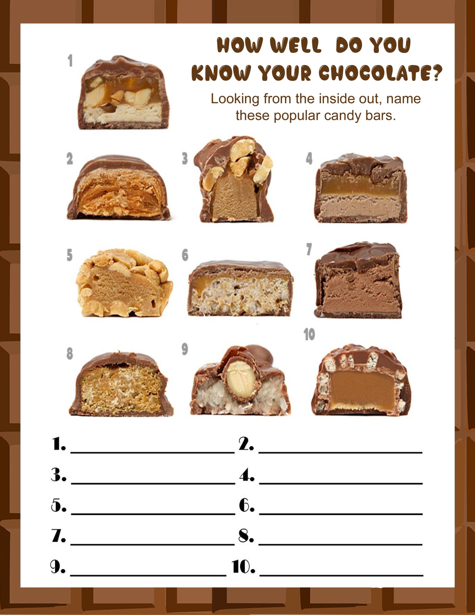 Whether you’re hosting a party, looking for a fun activity for kids, or just want to test your own candy bar knowledge, this game is perfect for any occasion. Simply download and print out the game cards, grab some pens or pencils, and get ready to have a blast!