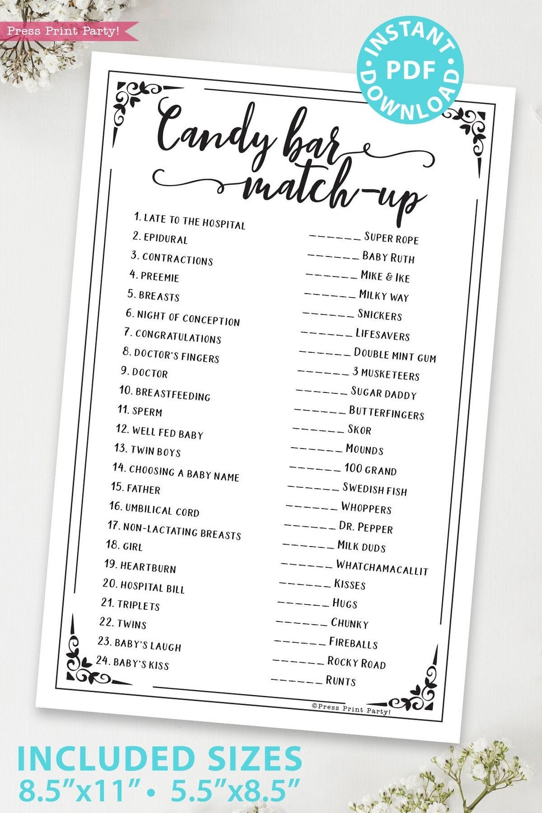 Candy Bar Match up Baby Shower Game Printable Unique Baby Shower Game Template Funny Baby Shower Activities Rustic INSTANT DOWNLOAD Etsy