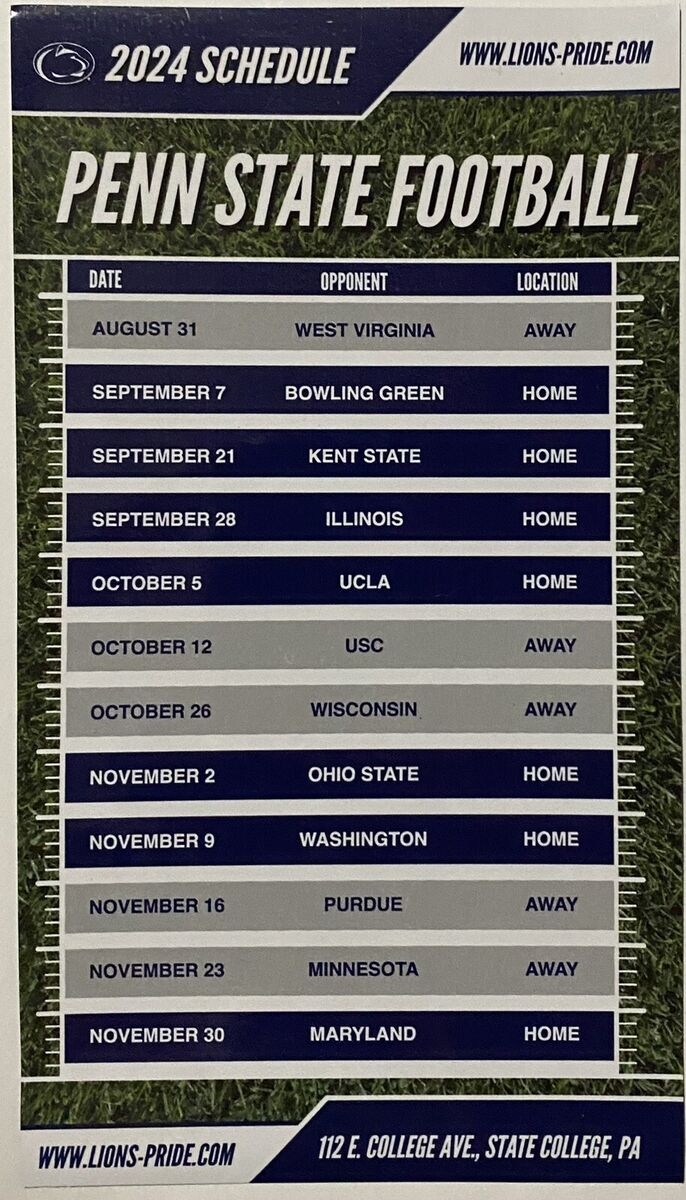 Penn State 2024 Football Schedule Magnet Nittany Lions PSU
