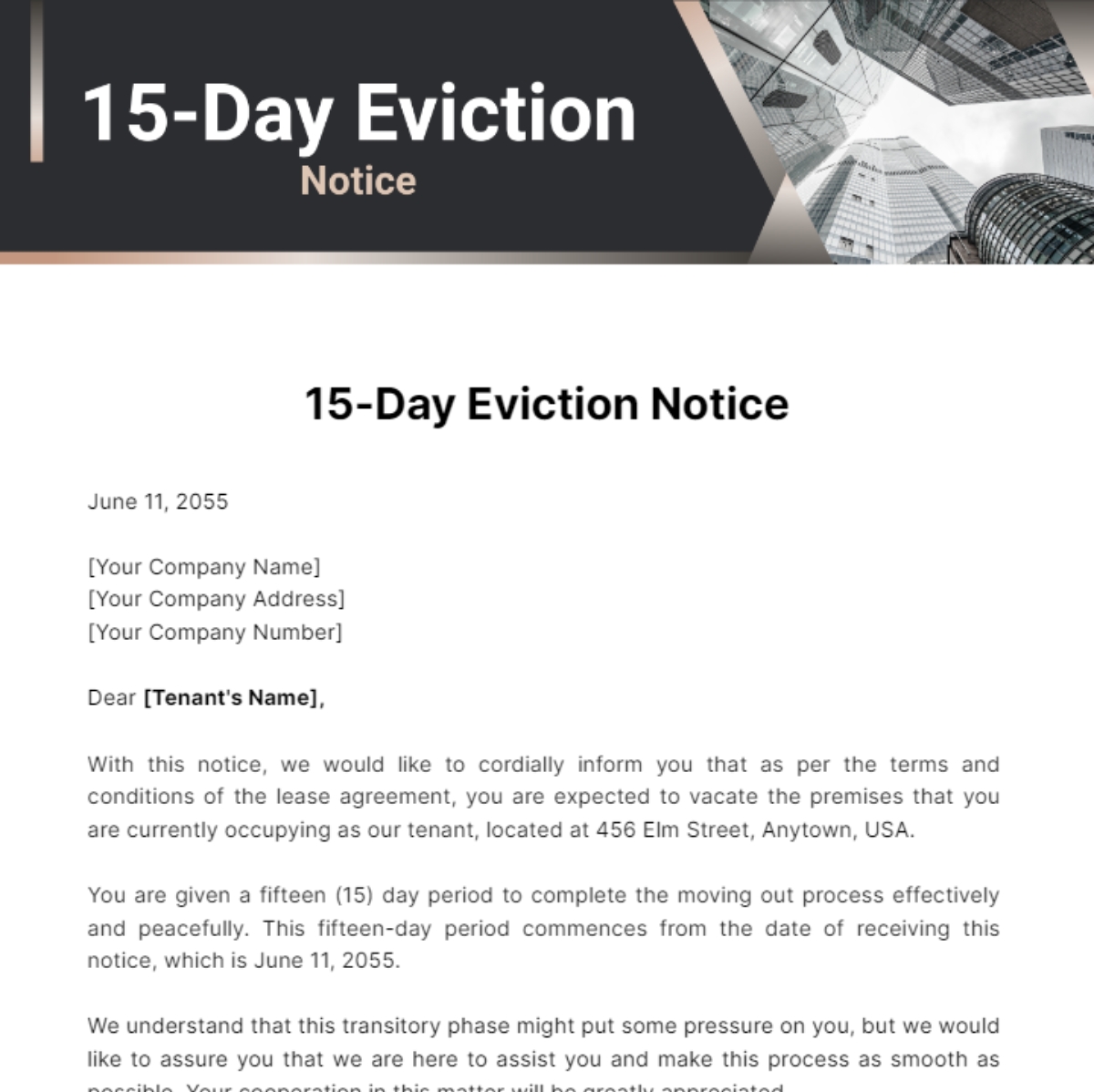 Eviction notices are legal documents that must be served properly to tenants who are not abiding by the terms of their lease. A 15-day reminder eviction notice gives tenants a final chance to rectify the situation before further action is taken.