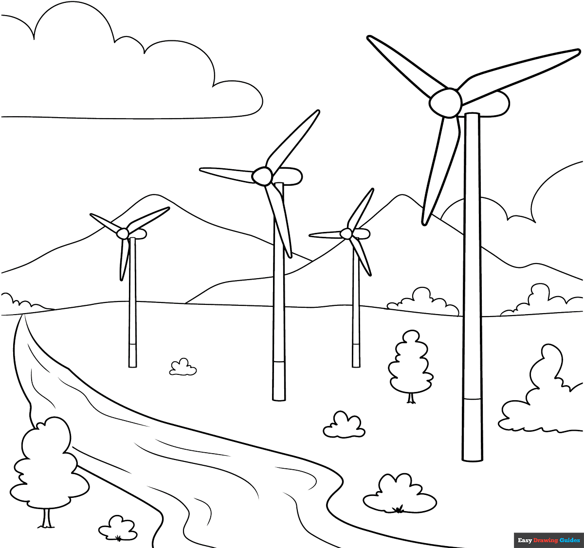 Wind Turbine Coloring Page Easy Drawing Guides