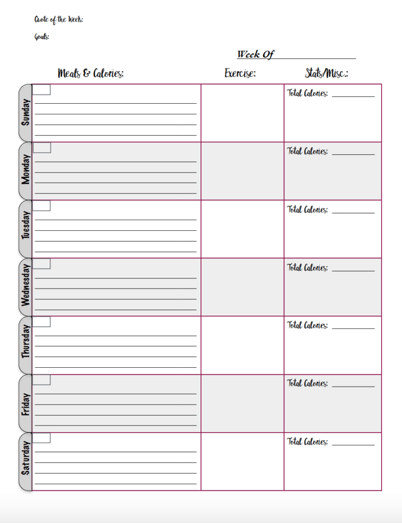 Printable Food And Exercise Journal