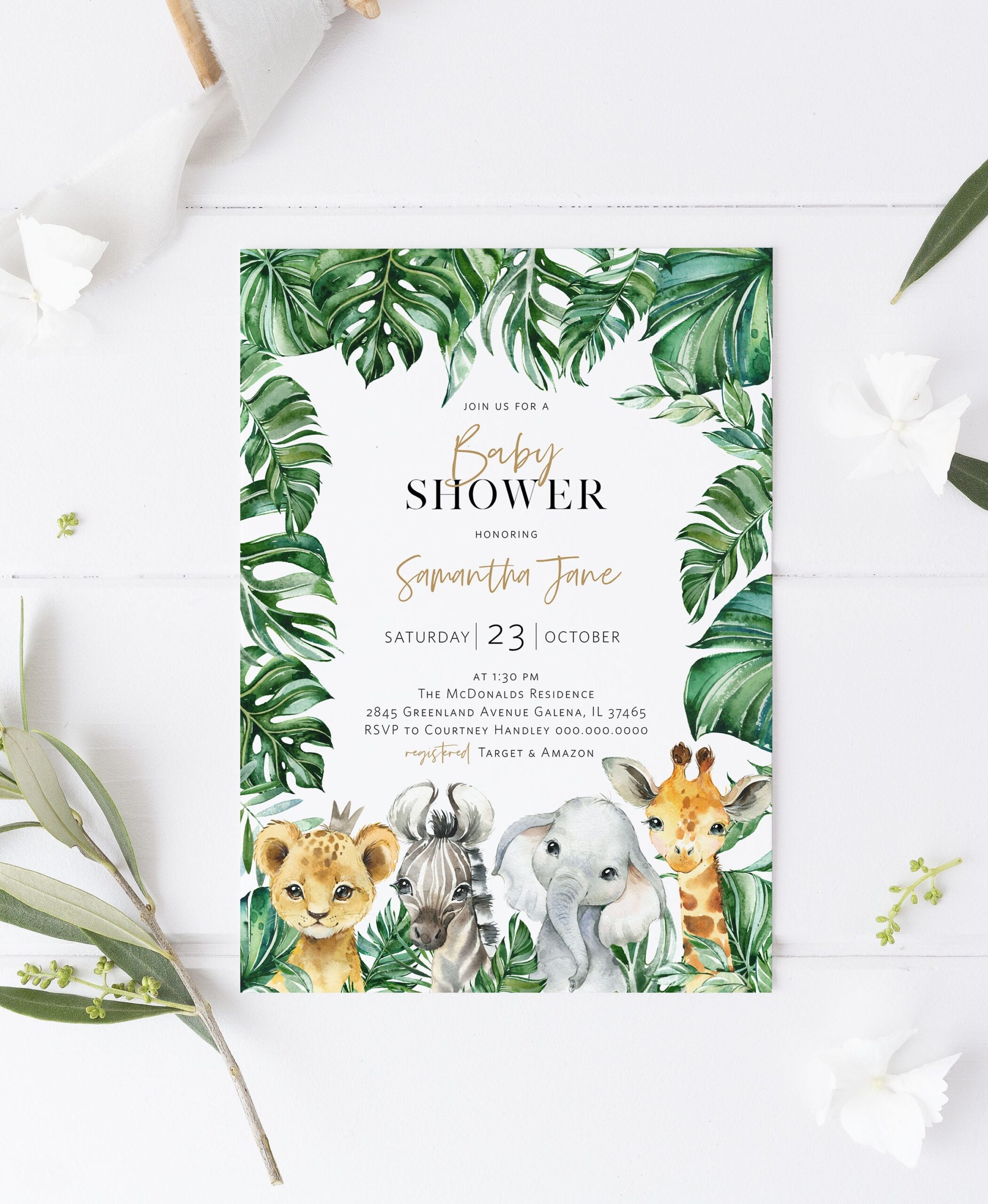 From cute animals like elephants and giraffes to vibrant greenery and tropical vibes, these invitations will bring a touch of the wild to your celebration.