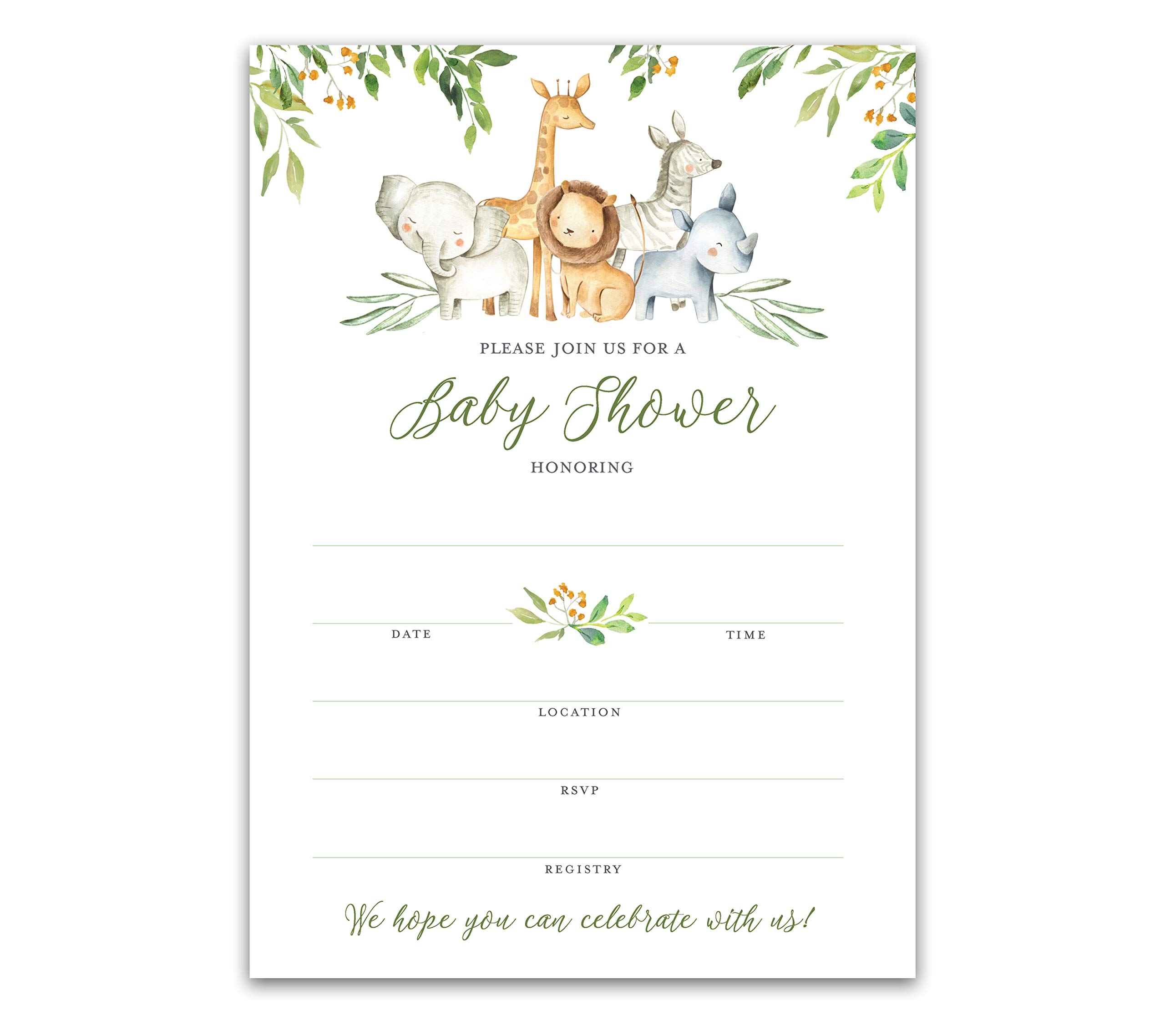 Don’t forget to coordinate your decorations, favors, and games with your jungle theme to create a cohesive and memorable experience for everyone. These printable invitations will set the stage for a wild and wonderful baby shower that the mom-to-be will treasure forever.