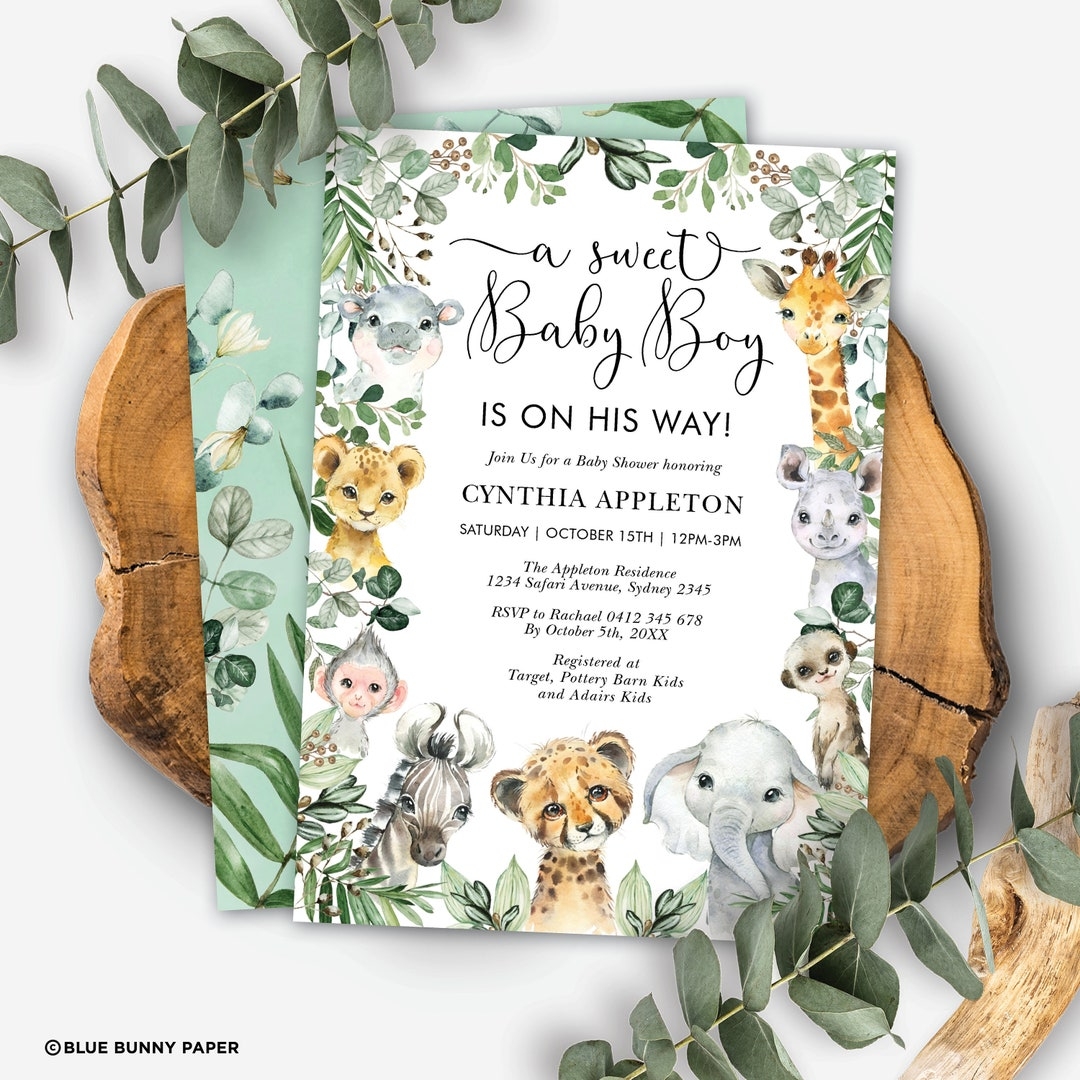 Jungle Safari Baby Shower Invitation Template Printable Baby Shower Invites Greenery Baby Shower Invitation Gender Neutral Baby Shower Etsy