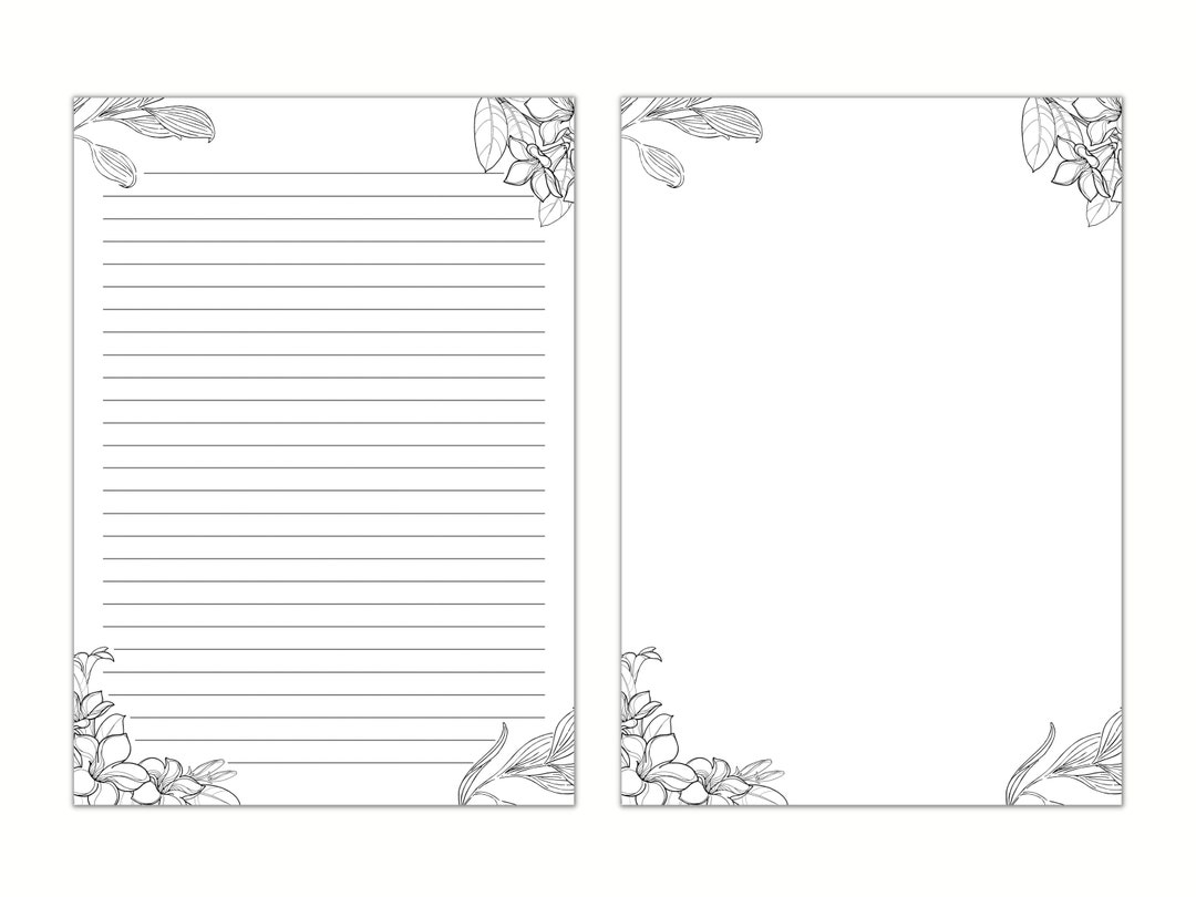 Black And White Floral Lined Paper Printable Stationery Paper Journal Paper Digital Download Stationary Paper Minimalist Penpal Letter Etsy UK