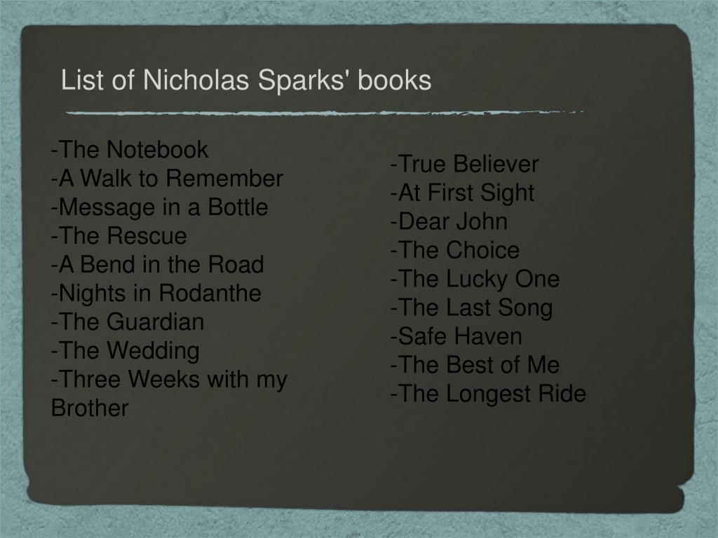 PPT Nicholas Sparks PowerPoint Presentation Free Download ID 5756444