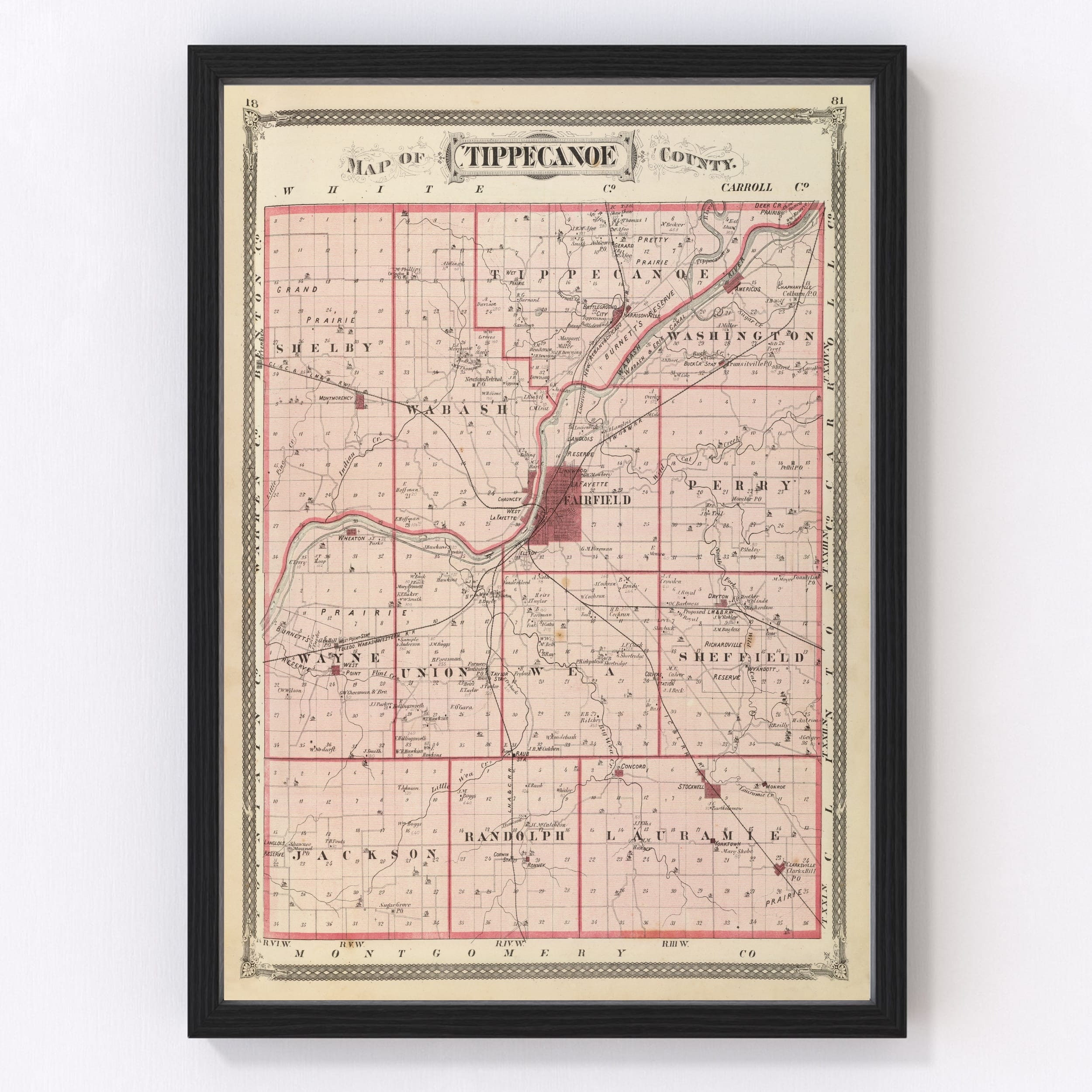 Tippecanoe County Map 1876 Vintage Tippecanoe County Map Old Tippecanoe County Indiana Art Wall Art Gift For Tippecanoe County History Lo Etsy