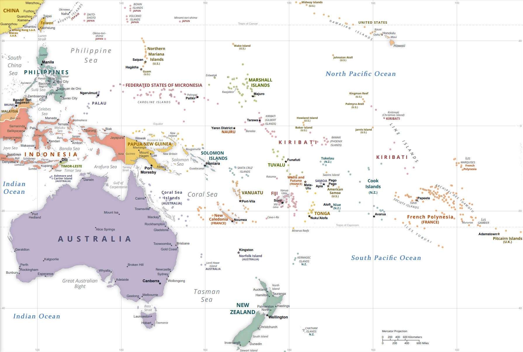 Oceania Labeled Map Labeled Maps