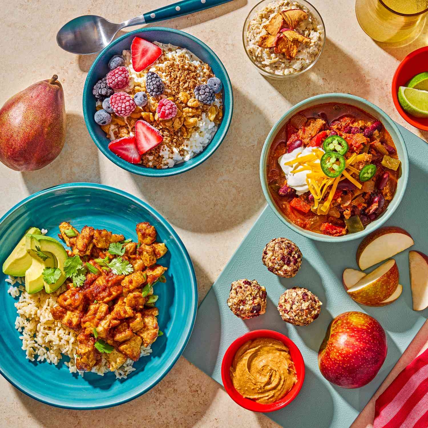 Breakfast options may include oatmeal with fresh berries, whole-grain toast with avocado, or a vegetable omelet. For lunch, consider a salad with grilled chicken, a turkey and avocado wrap, or vegetable stir-fry with brown rice. Dinner ideas could feature baked salmon with quinoa and steamed vegetables, lentil soup with a side salad, or grilled tofu with roasted sweet potatoes.