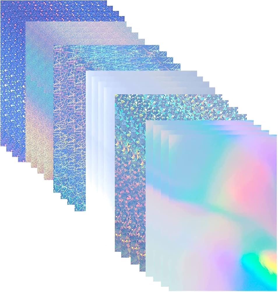 Acidea Holographic Vinyl Sticker Paper 24 Sheets Printable Self Adhesive Sticker Paper A4 Waterproof Quick Drying Rainbow Paper For Inkjet And Laser Printers 6 Styles Mixed Amazon de Stationery Office Supplies