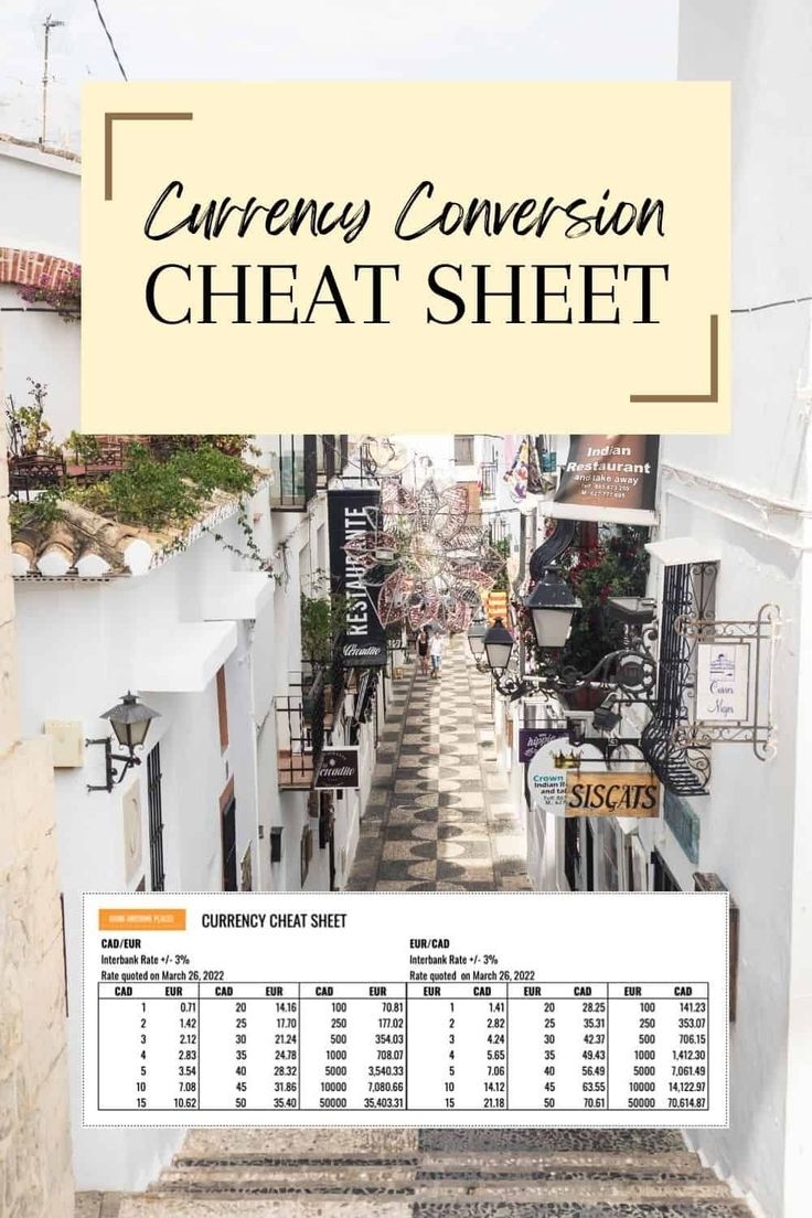 Pocket Sized Currency Conversion Cheat Sheet For Travellers