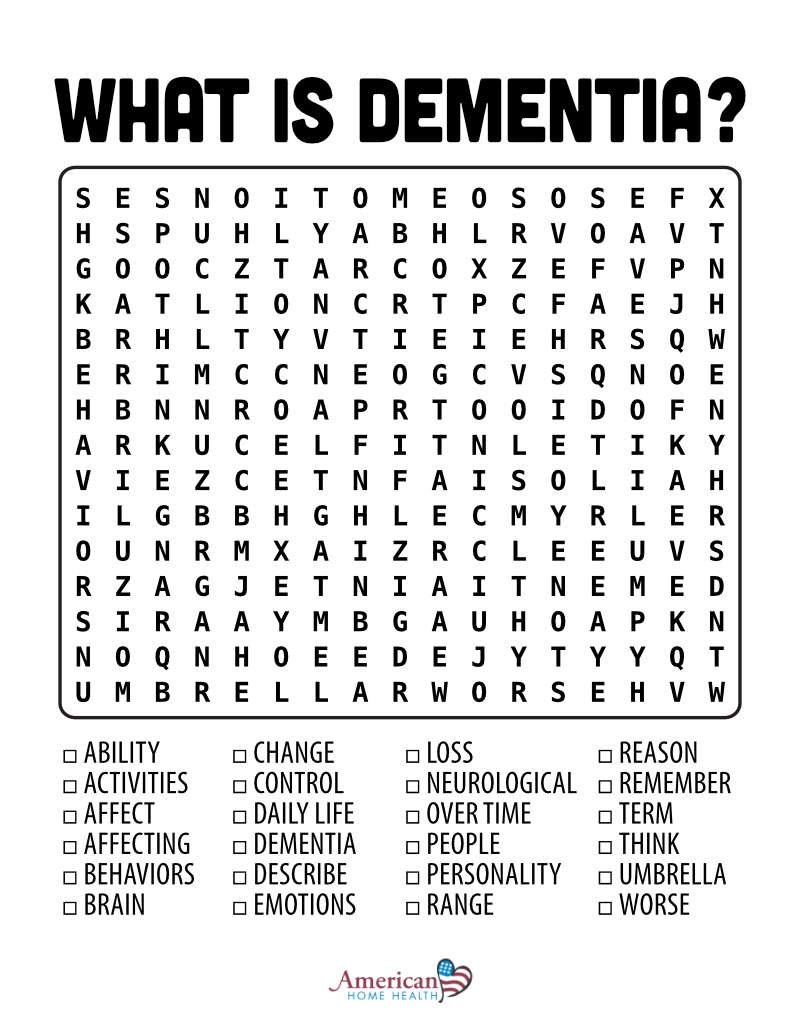 Dementia Word Search WordMint