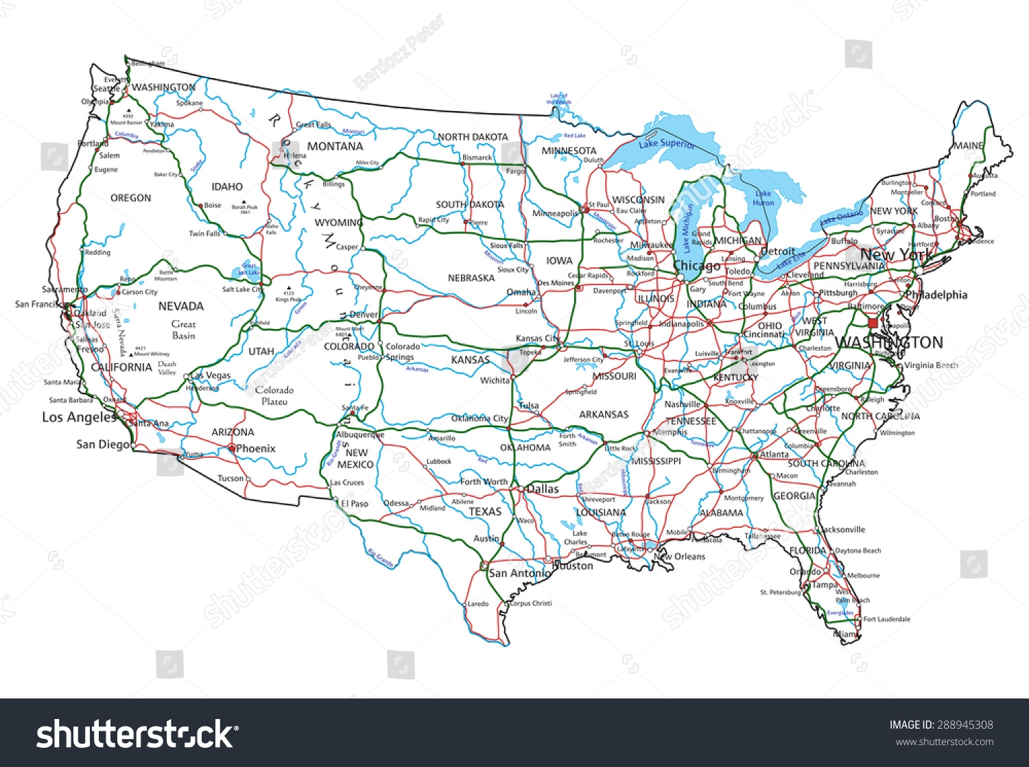 US Stra e Und Autobahn Karte Vektorgrafik Stock Vektorgrafik Lizenzfrei 288945308 Shutterstock