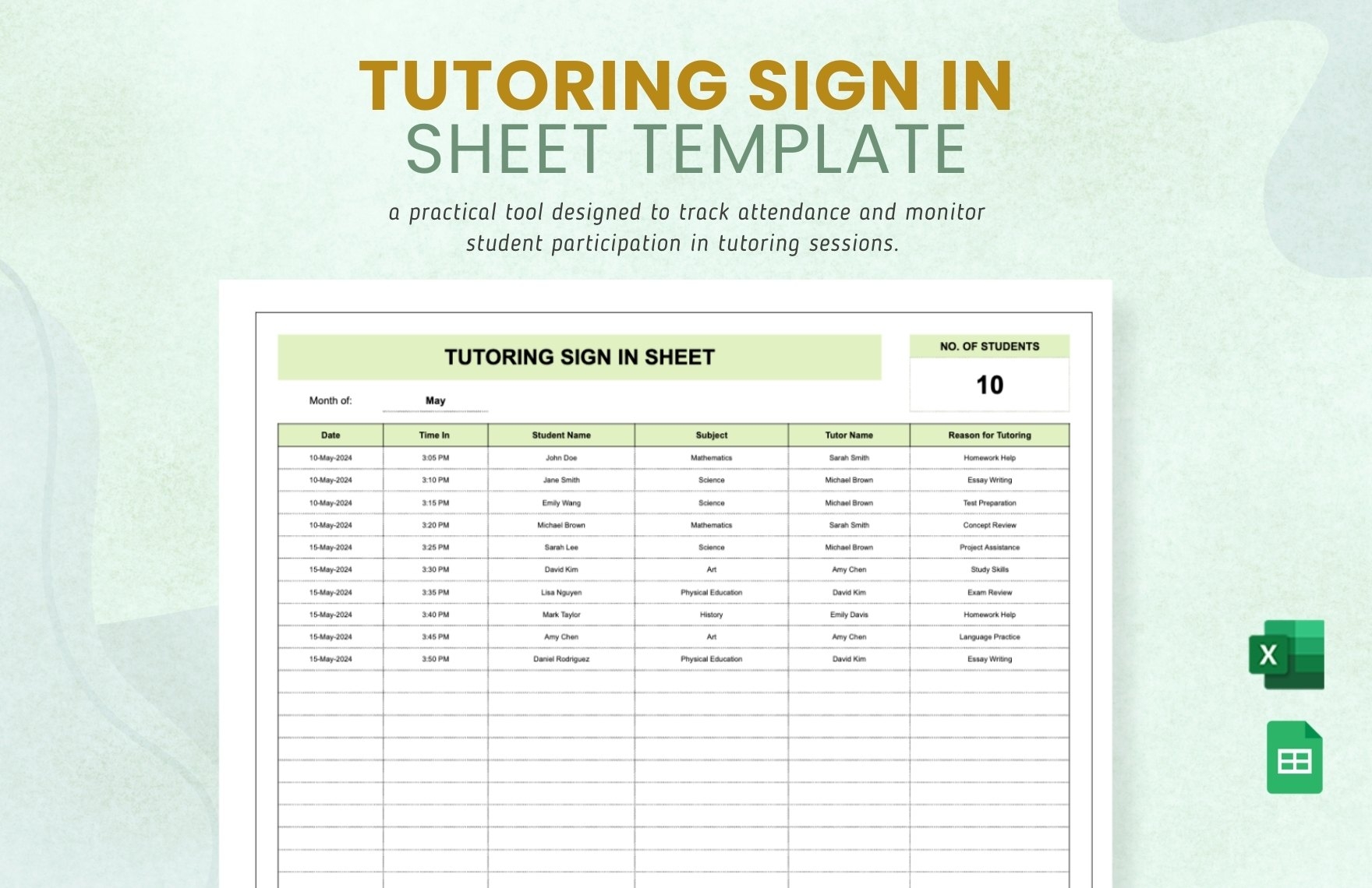 Tutoring Sign In Sheet Template In Excel Google Sheets Download Template