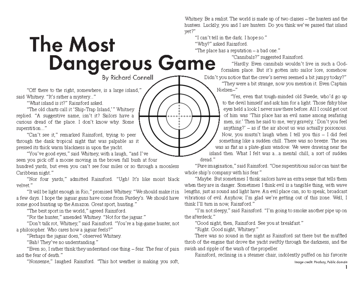 Printable Version Of The Most Dangerous Game