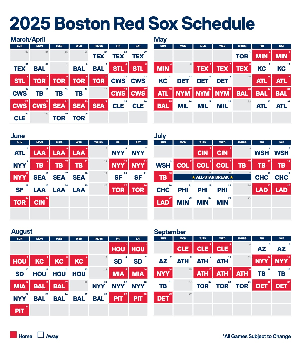 From opening day to crucial divisional matchups to exciting interleague clashes, you’ll never have to worry about missing a single pitch. Stay ahead of the curve and show your support for the Red Sox all season long!