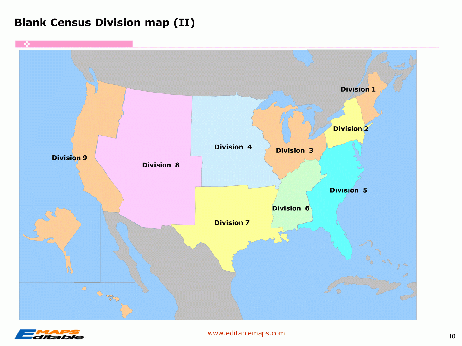 US Regions Map With Nine Divisions Editable PowerPoint Maps
