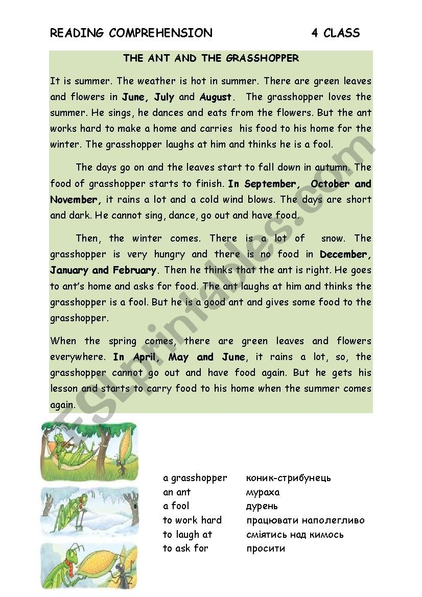 The Ant And The Grasshopper ESL Worksheet By Silviana s