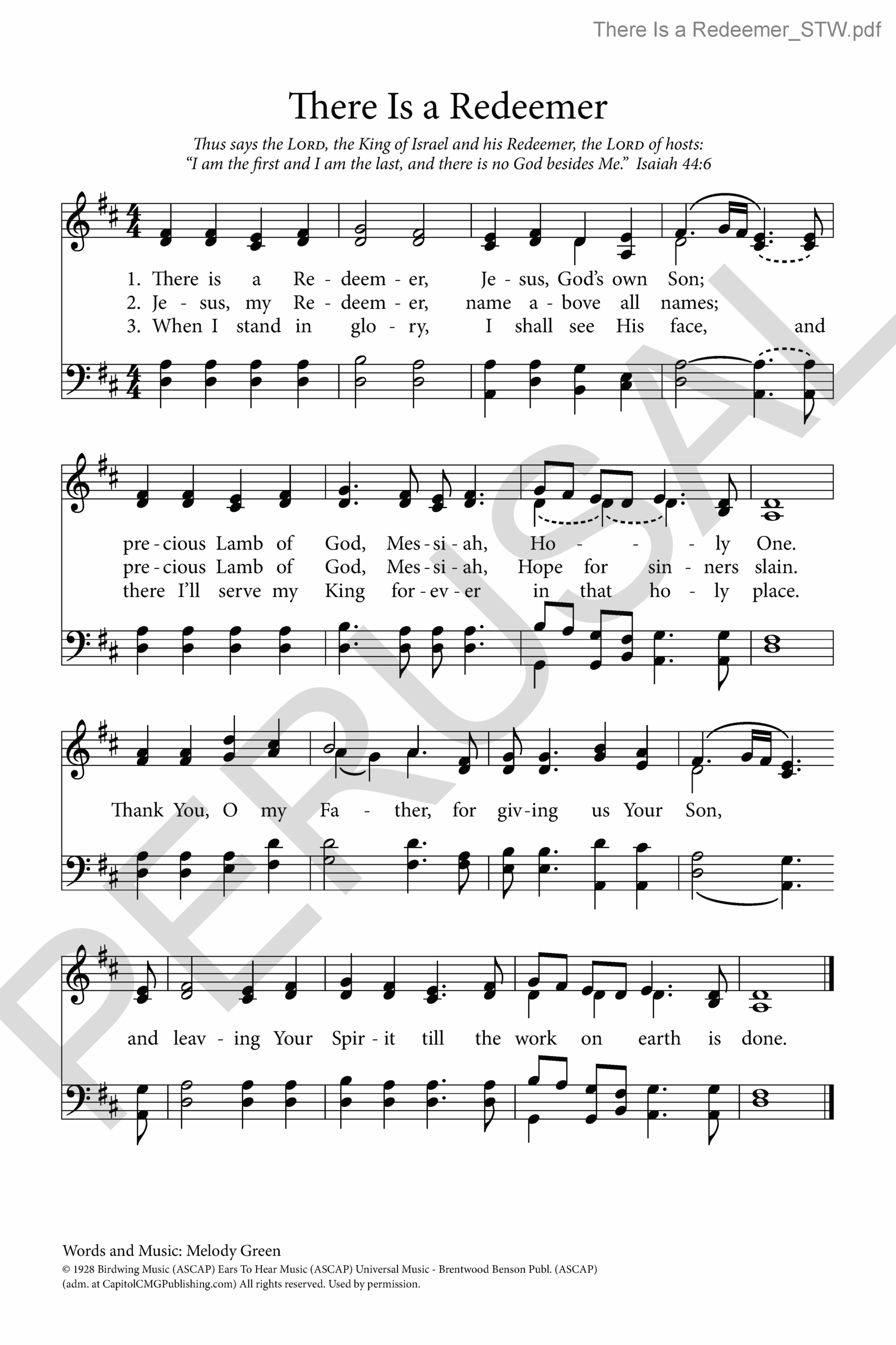 So why wait? Download our printable version of the lyrics to “There Is A Redeemer” today and start spreading the message of love and redemption to all those around you. Let the words of this timeless song inspire and encourage you as you journey through life.
