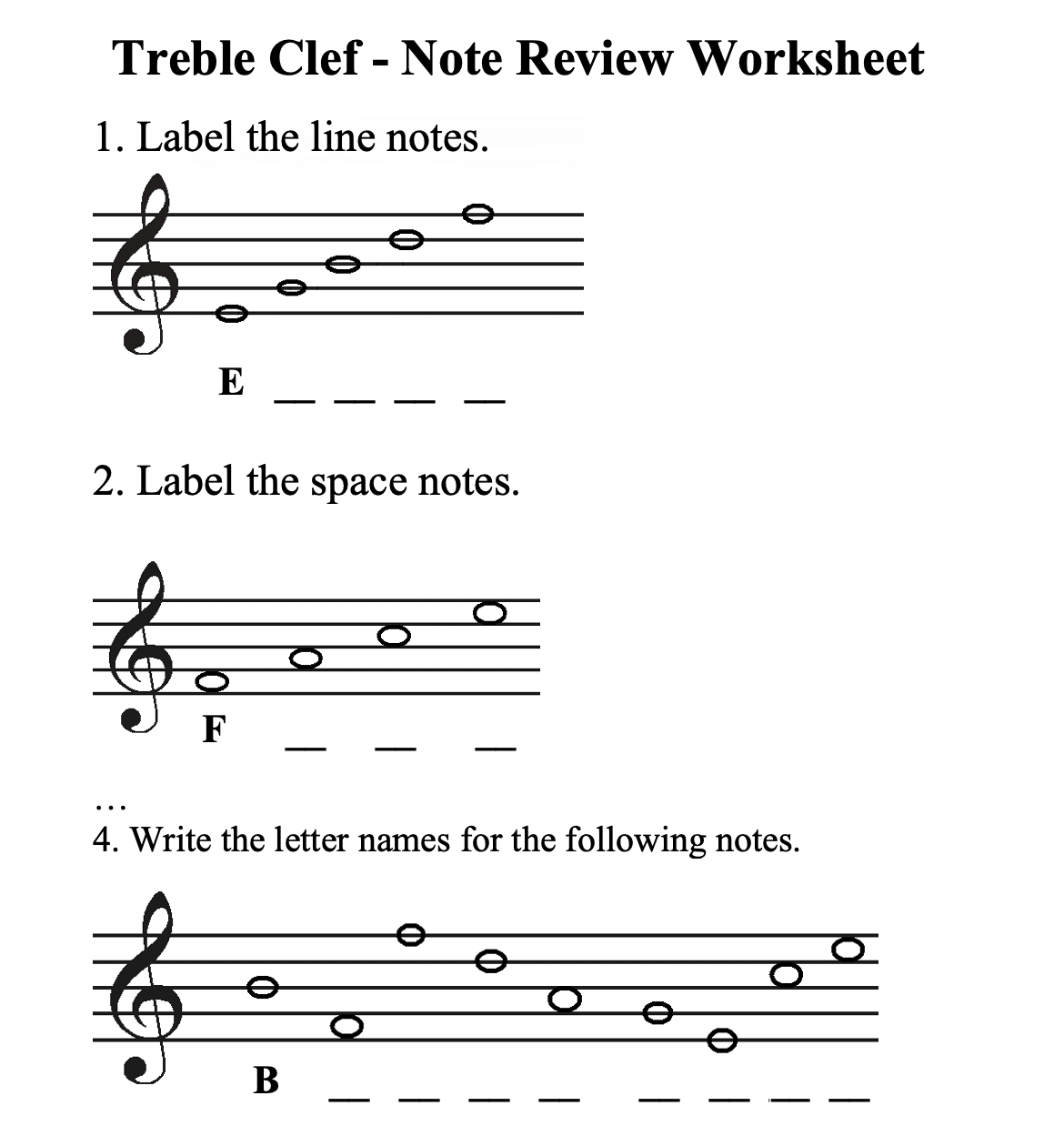 Treble Clef Note Naming Worksheet Schools Music Market