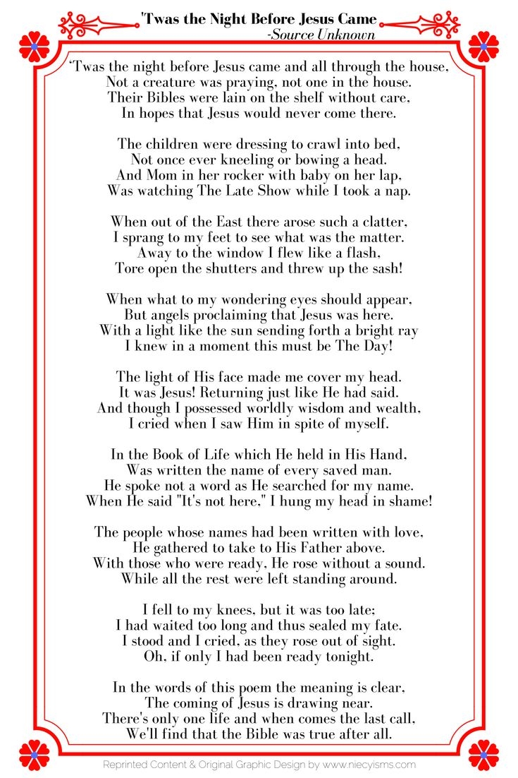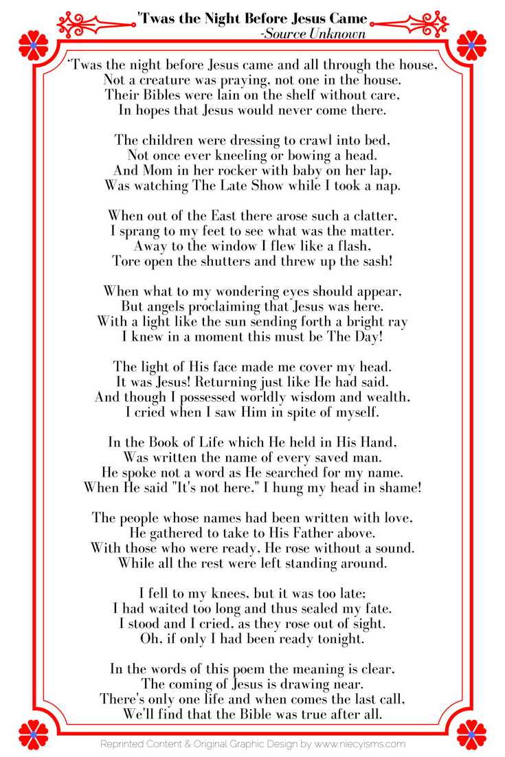 Twas The Night Before Jesus Came Poem Printable