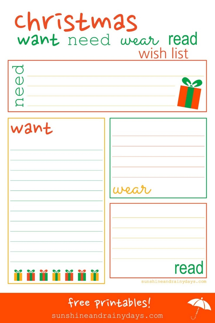 Want Need Wear Read Christmas List Printable